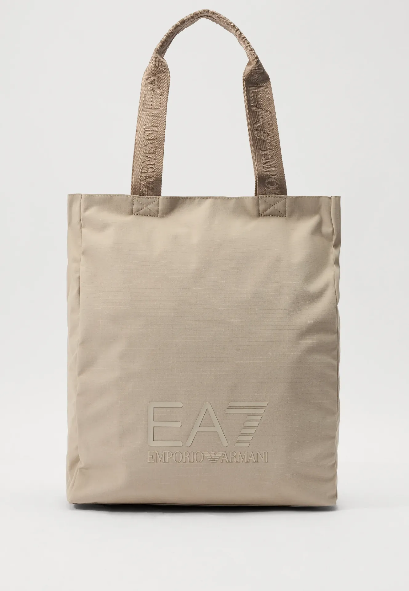 Borsa shopper realizzata in tessuto tecnico e pensata per la palestra e il tempo libero. Il modello, con manici in nastro logato e dai volumi capienti, presenta una EA7. Un accessorio perfetto anche da abbinare a look casual dedicati a brevi viaggi.
