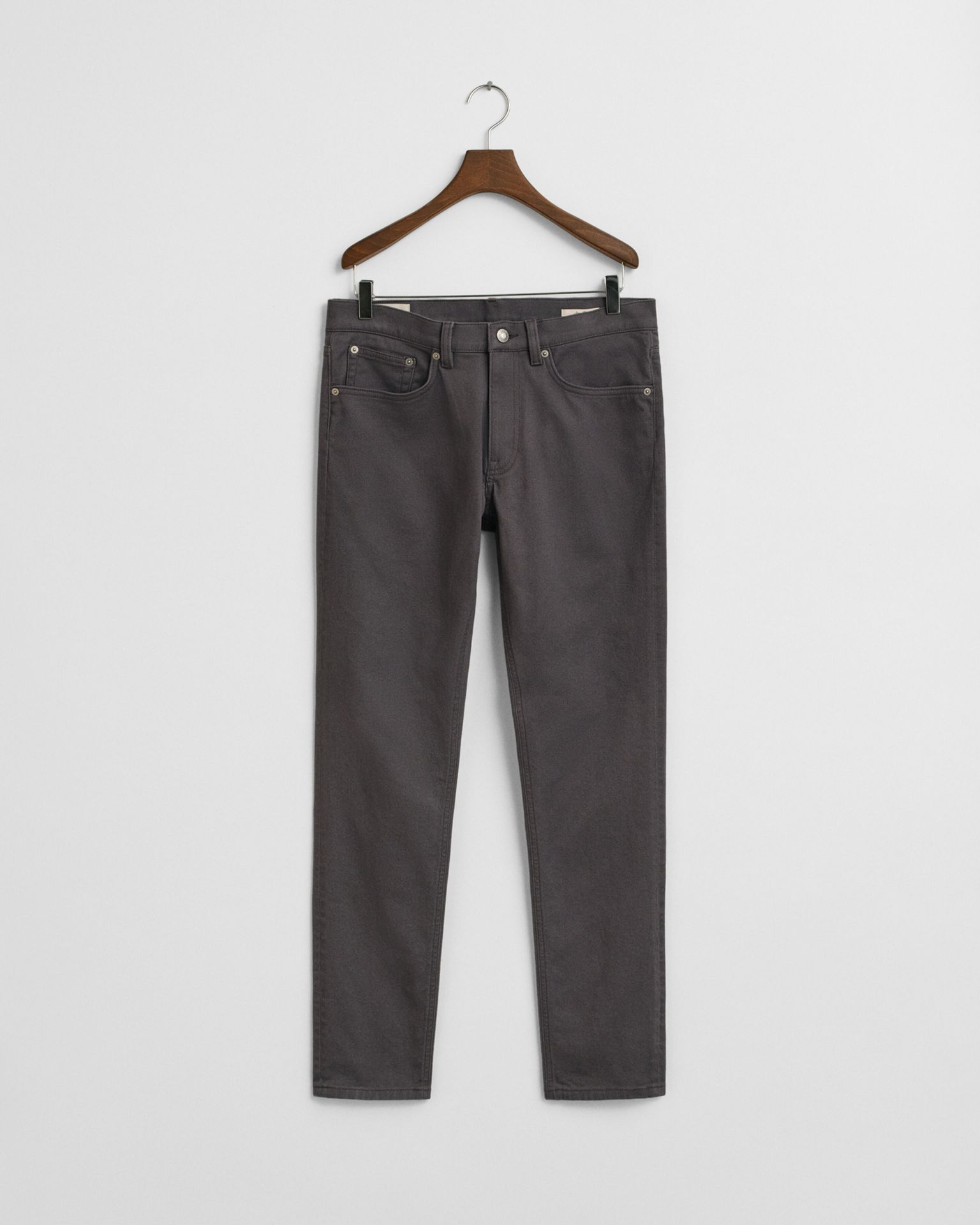 Seguendo uno stile classico e senza tempo, questi jeans hanno una vita media e una vestibilità slim. Realizzati in morbido twill spazzolato con inserti elasticizzati, questi jeans presentano un design a 5 tasche, bottoni a gambo e rivetti con logo, una patta con cerniera e una toppa in pelle con logo GANT sul retro.
