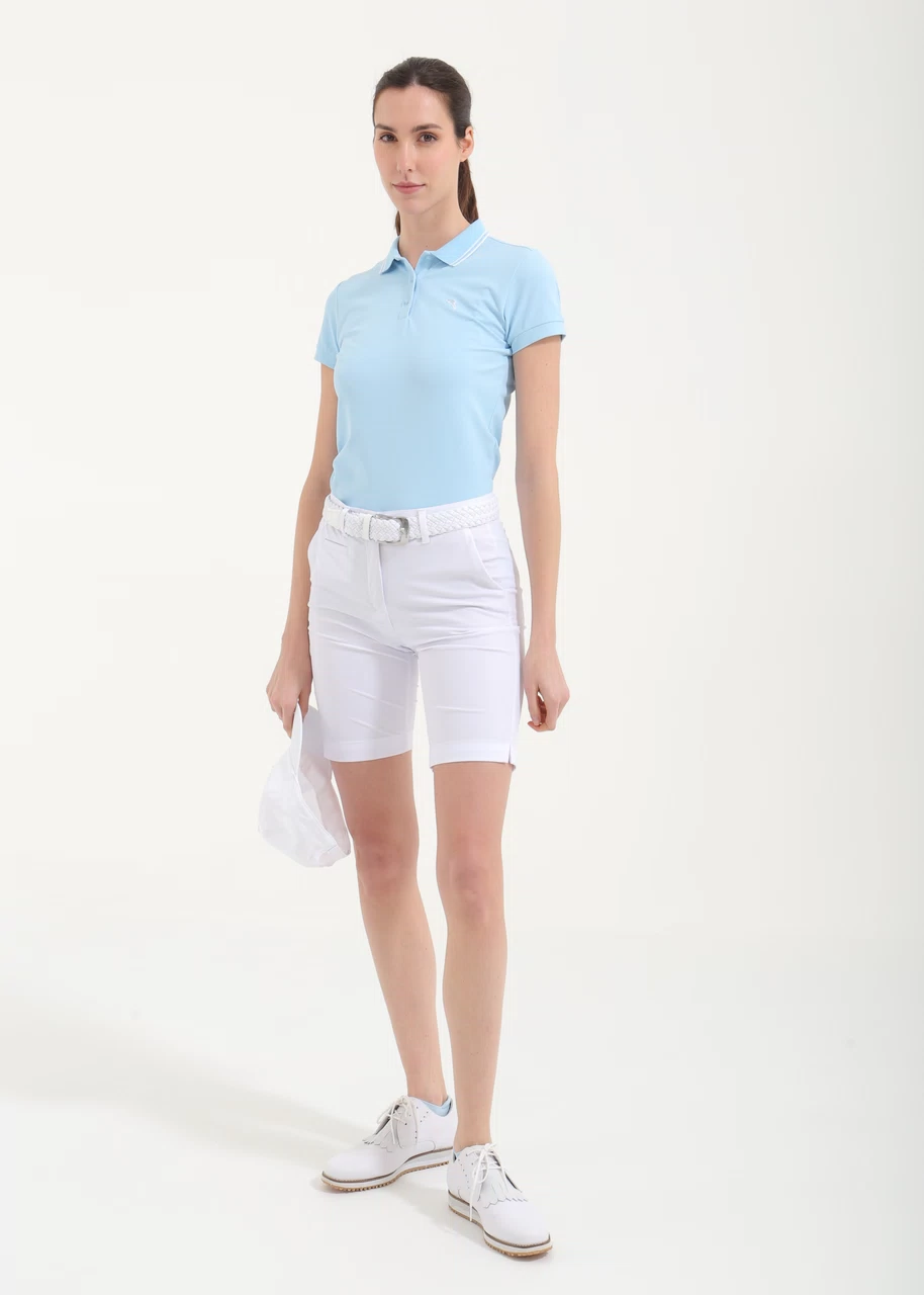 Short donna in tessuto Sunblock e Dry-Matic bielastico indemagliabile e indeformabile, con aspetto tecnico e mano fresca, adatto per l'intera stagione. L'efficace trattamento anti UV protegge dai raggi solari più nocivi. Inoltre, il filato in poliammide permette una rapida asciugatura. Un capo pratico e confortevole, con ampie tasche laterali e vita parzialmente elasticizzata con silicone nel retro della cintura per un miglior grip, apertura con bottone e zip.
