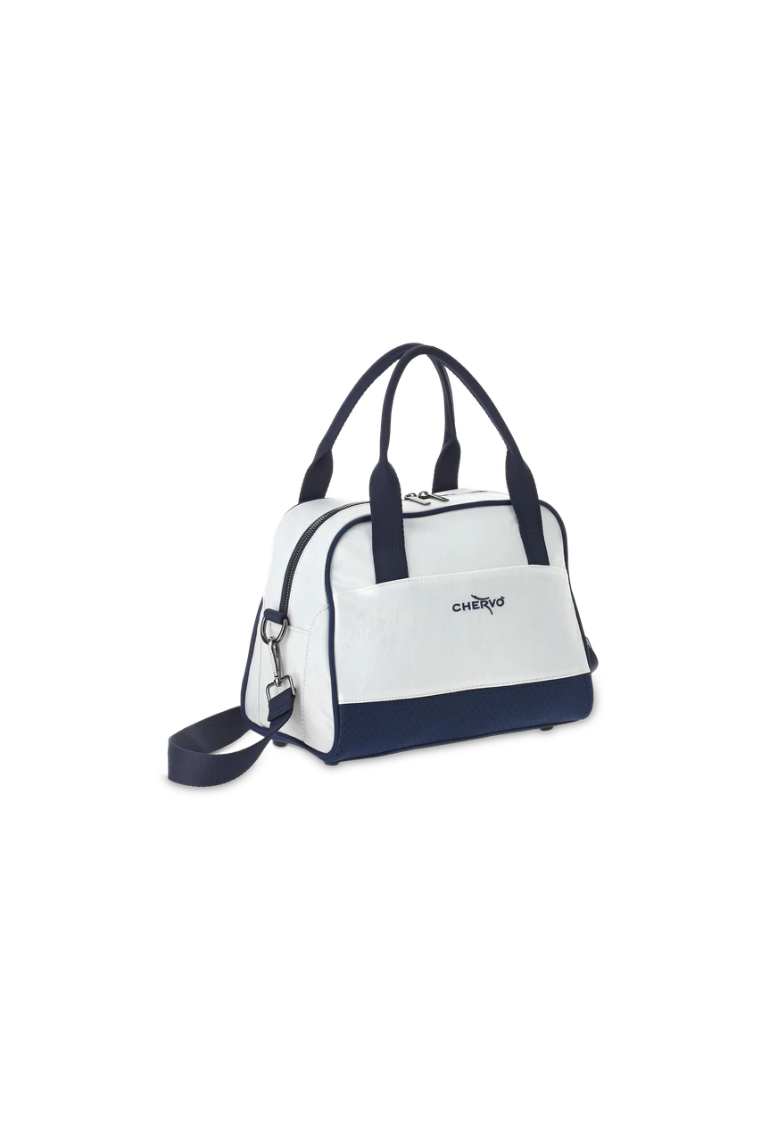 Cremisi è una borsa sportiva compatta, pensata per accompagnare la giornata con stile e funzionalità, dal campo da golf al tempo libero. Il tessuto con effetto stropicciato, abbinato al neoprene traforato, dona un carattere contemporaneo al design, mentre la tracolla removibile e i pratici doppi manici garantiscono massima versatilità. Le tasche interne permettono di organizzare al meglio gli oggetti personali, mentre il logo Chervò ricamato firma il modello con un dettaglio distintivo. Con una capacità di 9 litri, Cremisi è l’accessorio ideale per chi cerca praticità e stile in un formato compatto.