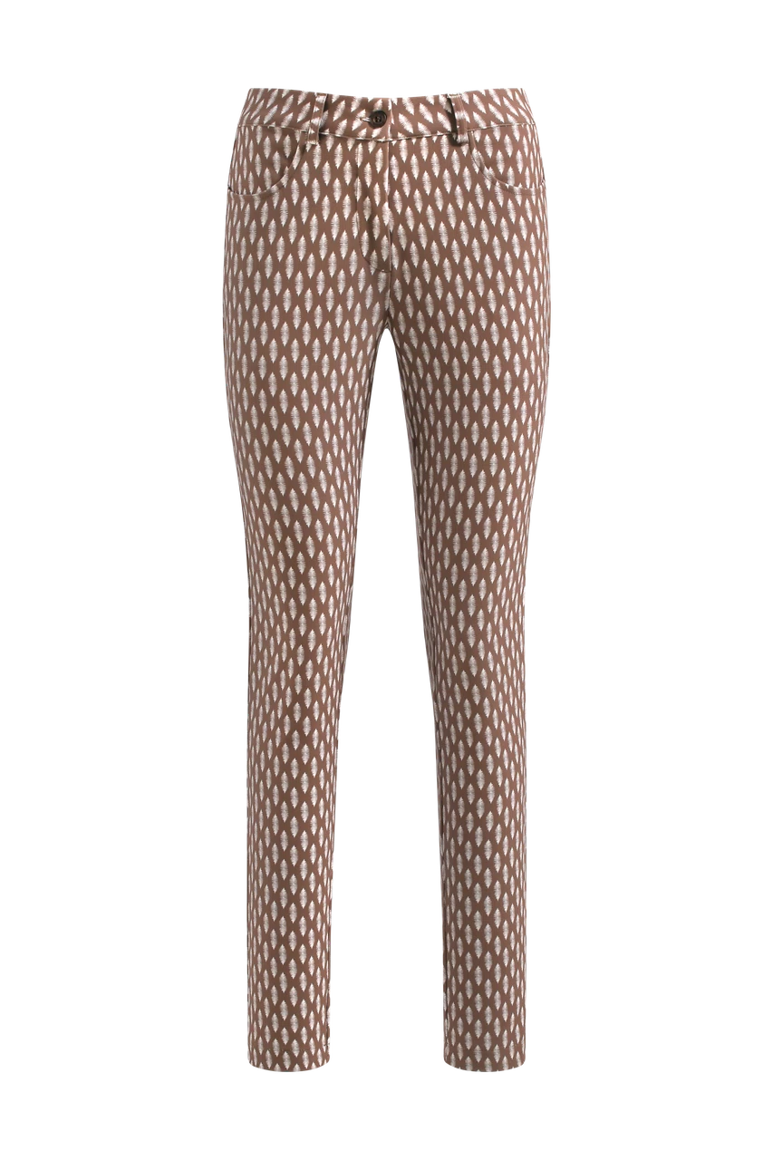 Pantalone cinque tasche, in tessuto super stretch stampato fantasia all-over con aspetto opaco. Morbido, cascante e termico grazie alla soffice smerigliatura interna. Bottone in tono, chiusura con zip, vestibilità asciutta.