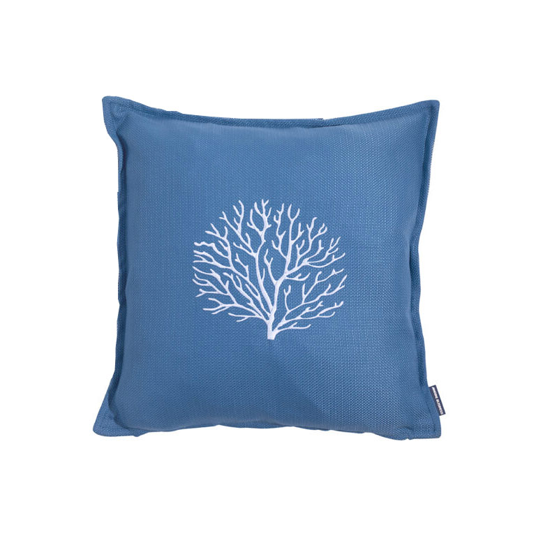 Cuscino waterproof Aruba (45×45 cm), con ricamo di corallo bianco. Realizzato in polipropilene, un tessuto impermeabile, morbido e resistente al sole, macchie e liquidi. Lavabile con candeggina, ideale per esterni. Con colori lisci e screziati, perfetti per il tuo spazio.