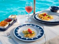 I piatti sono leggeri e si impilano occupando pochissimo spazio. Sono inoltre di dimensioni generose e hanno tutti gli accessori da abbinare per gustare i tuoi menù a bordo